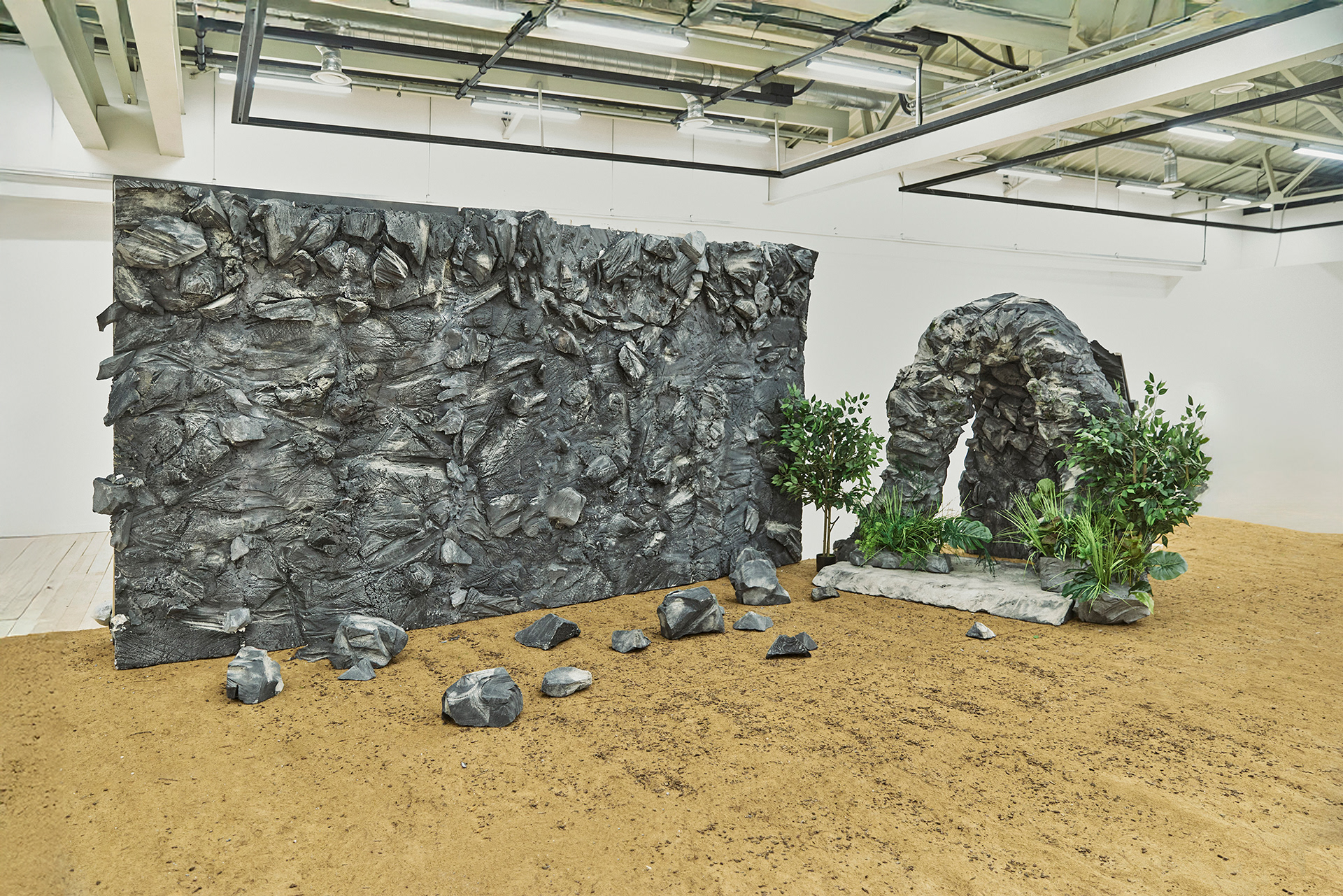 벽면과 막다른 동굴 입구로 구성된 모듈형 세트를 조합해